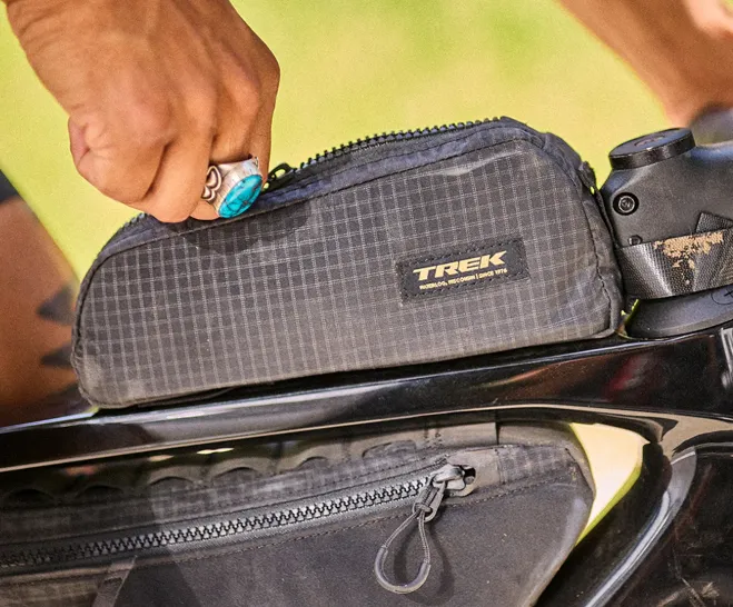 Baľte múdro a rýchlejšie. V taške Trek na hornú rámovú rúrku budete mať všetko pekne po ruke hneď pri riadidlách. Vďaka spoľahlivému systému upevnenia, vnútorným vreckám a odolným materiálom bude vaše obľúbené cyklistické príslušenstvo v bezpečí a vždy na dosah ruky.