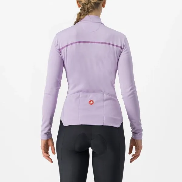Castelli dámsky dres Sinergia 2 v farbe Orchid Petal/Purple Dew je ideálnou voľbou pre cyklistky, ktoré chcú spojiť funkčnosť s elegantným vzhľadom. Je vyrobený z jemného, teplého a pružného materiálu Warmer, ktorý je z vnútornej strany doplnený o počesaný fleece pre vyšší tepelný komfort v chladnejších dňoch.