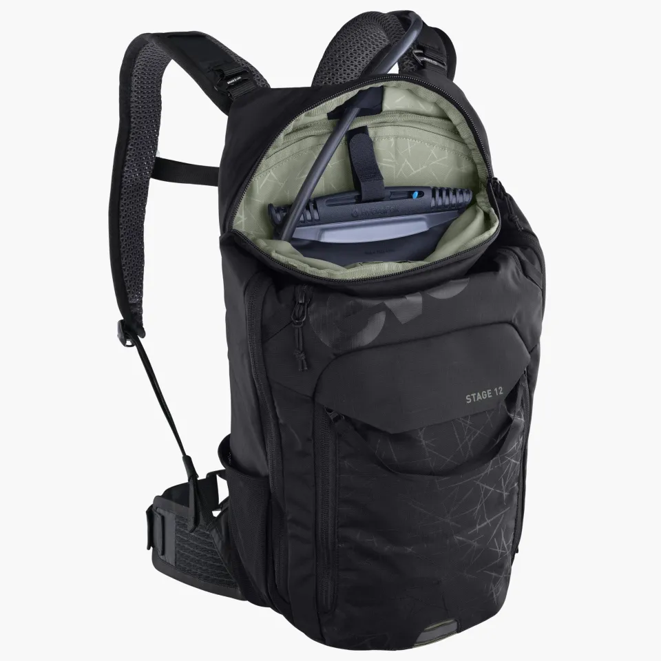 Model EVOC Stage 12l je veľmi kompaktný, a pritom vybavený batoh s mnohými skvelými vlastnosťami. Pokiaľ rád jazdíte naľahko a máte rád pohodlnú jazdu, je Stage presne pre vás! Špeciálnou vychytávkou na tomto modeli je BRACE LINK na hornej časti popruhov u ramien. Vďaka tejto technológii sa popruhy automaticky prispôsobia šírke vašich ramien a zaistí maximálny komfort aj pri dlhšej jazde vďaka optimálne distribúcii váhy.