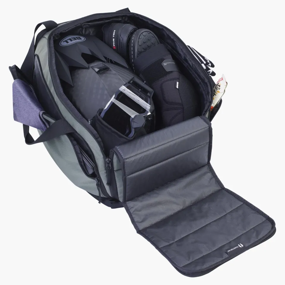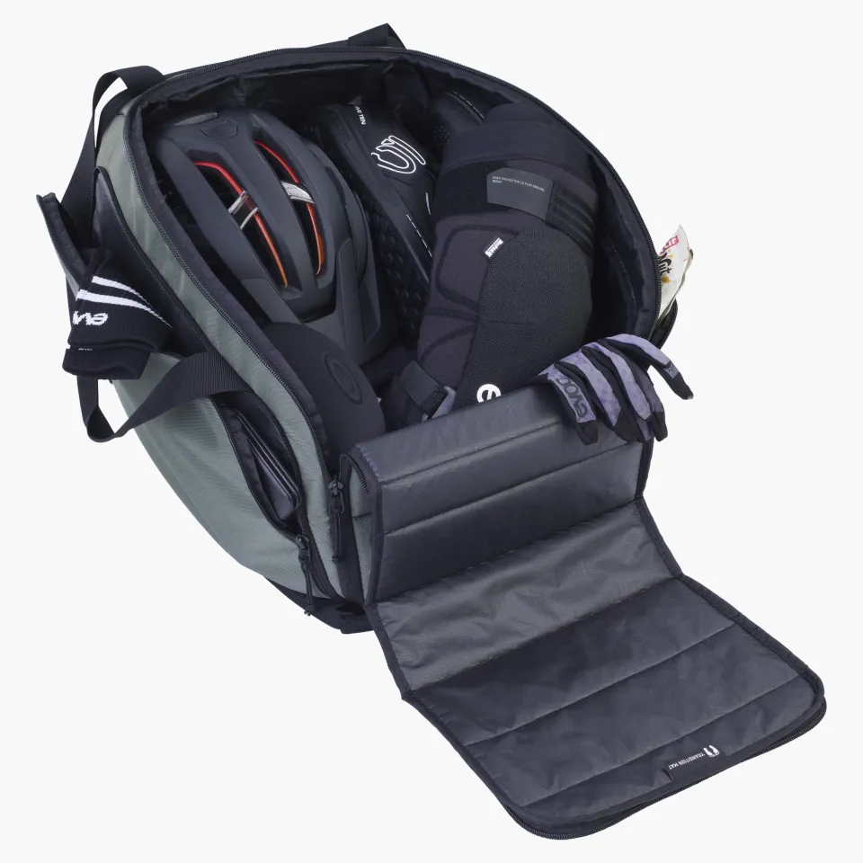 Taška ponúka polstrovaný hlavný priestor s dostatočnou kapacitou pre prilbu, oblečenie alebo chrániče. Samostatná priehradka na topánky udrží špinavú výbavu oddelene od ostatných vecí. K dispozícii je tiež rýchlo prístupné bočné vrecko a praktická vodeodolná prebaľovacia podložka, ktorá poslúži pri prezliekaní alebo prezúvaní v teréne.