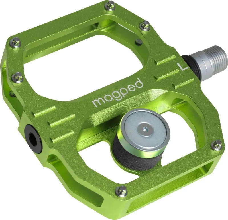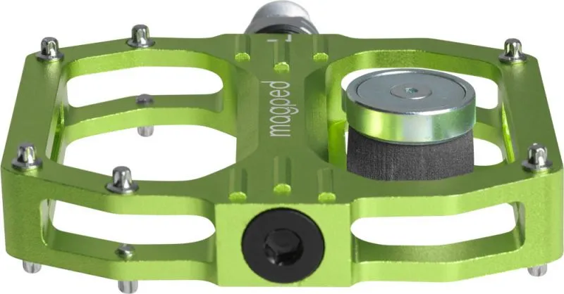 Nízka hmotnosť Magped je moderné, vysoko kvalitný plochý pedál vyrobený z ľahkého CNC rezaného hliníka s vretenom CrMo. Hmotnosť vrátane patentovaného magnetického systému je len 458 gramov (200N magnet) na pár.