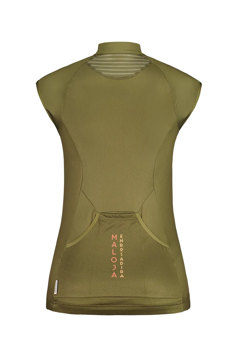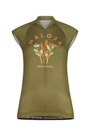 Vysoko priedušný cyklistický dres užšieho priliehavého strihu bez rukávov od značky Maloja. Časti z materiálu mesh na krku. Silikónový lem v páse ho pri jazde pevne drží na mieste. Samozrejmosťou sú tri úložné vrecká na zadnom diele. Čistý dizajn zdobí letný motív kvetov na hrudi.