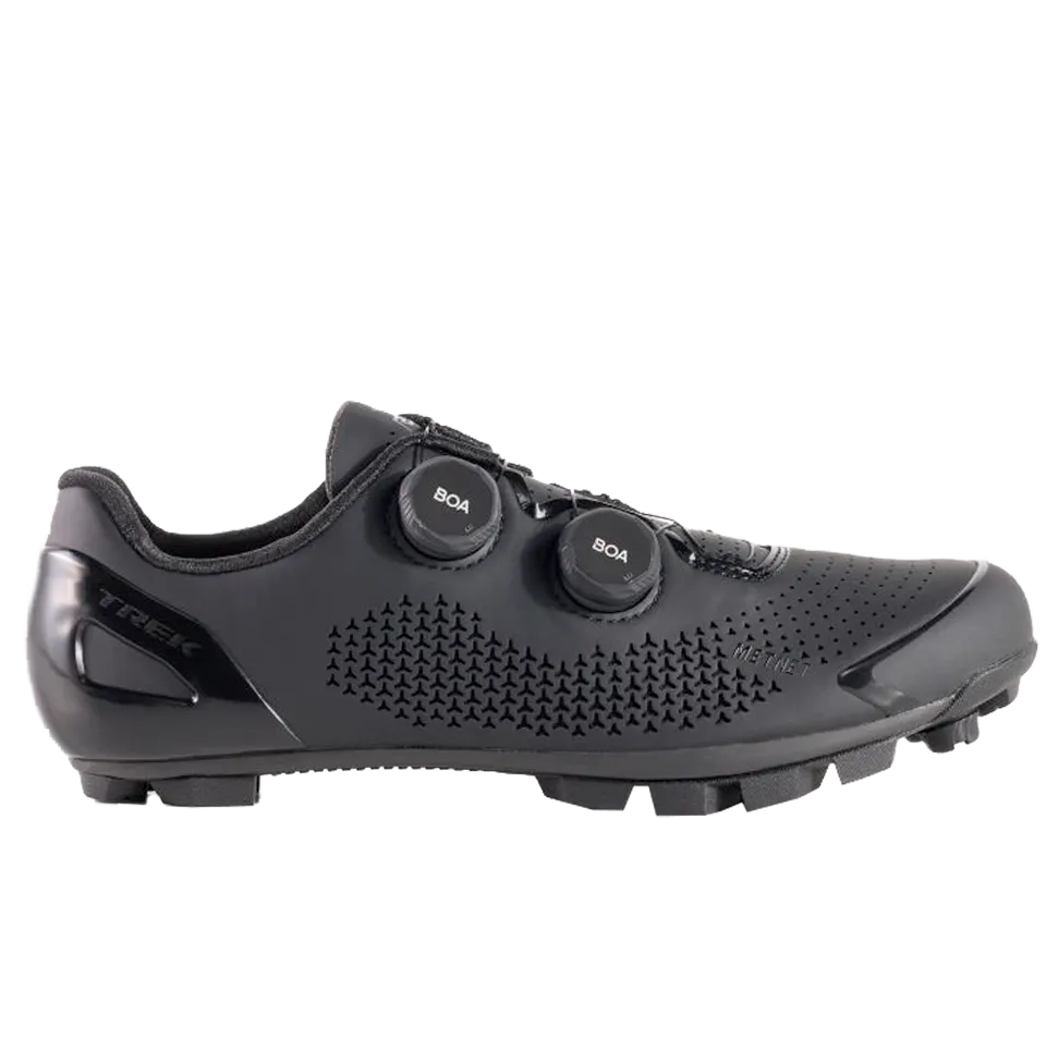 Podrobné údaje o výrobku - V ergonomicky tvarovanom prevedení umožňuje model Trek Pro podávať tie najlepšie výkony. - Elastické odľahčovacie zóny METNET sa prispôsobujú nohe a zabraňujú bežným otlakom chodidla. - Podrážka z karbónu OCLV umožňuje výborný prenos sily pre optimálnu účinnosť šliapania. - Systém zapínania BOA s dvoma kolieskami Li2 umožňuje mikronastavenie, takže tretry skvele padnú a sú vhodné pre dynamickejšiu a obratnejšiu jazdu. - Externá ochrana a protišmyková úprava na päte stabilizujú nohu a zvyšujú účinnosť. - Tachyónová gumová podrážka a odnímateľné hroty na špičke a päte maximalizujú vynikajúcu priľnavosť na akomkoľvek povrchu. - Odolná pogumovaná vrstva GnarGuard chráni proti oderu a inému poškodeniu na trailoch. - Environmentally-conscious, high-performance Bloom insoles are made from 45% renewable sources