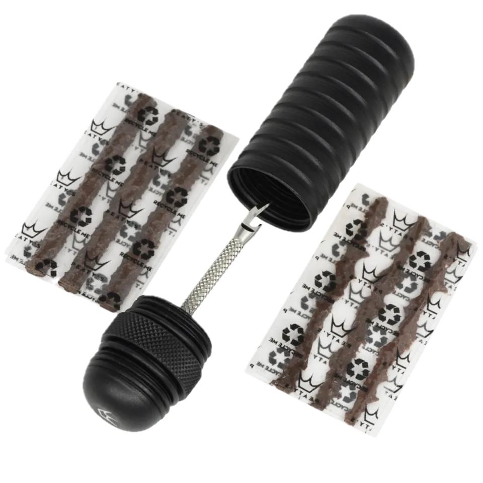 Když už defekt, tak s grácií. Tato precizně zpracovaná opravná sada pro bezdušové pláště vám umožní rychle a efektivně vyřešit i větší průrazy, a to přímo v terénu – bez sundání pláště a bez zbytečné ztráty času. Celá sada je zabalená v anodizovaném těle z hliníku 6061, které je vodotěsné díky těsnicím kroužkům. Vnitřní prostor ukrývá 3 tenčí knoty (1,5 mm) a 3 silnější knoty (3 mm). Hrot z nerezové oceli 316 má patentovaný tvar, který usnadňuje aplikaci, drží knot na místě a nezvětšuje zbytečně poškození pláště. Peaty’s Holeshot Tubeless Puncture Plug je must-have nářadí do kapsy každého trailového jezdce nebo enduristy. Funguje spolehlivě, vypadá luxusně a hlavně – zachrání vám den, když to nejmíň čekáte.
