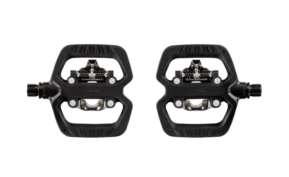LOOK Geo Trekking je hybridný pedál, ktorý je na jednej strane plochý a na druhej strane kompatibilný s SPD, navrhnutý na každodenné cesty do práce, po meste alebo na cyklotrasy. Nášľapná strana je kompatibilná so systémom SPD a má jednoduchý systém nastavenia, ktorý umožňuje nastaviť predpätie od 5 do 10. Pedál je dodávaný s kuframi EASY, ktoré uľahčujú záber o 30 %.