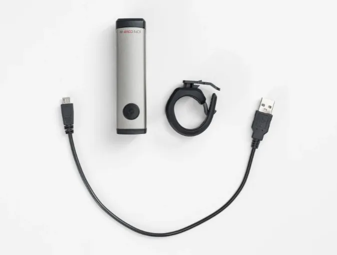Podrobné údaje o výrobku - Ion Comp R generuje silný lúč, ktorý osvieti ulicu, chodník či trail. - Široký lúč teplého svetla so svietivosťou 700 lúmenov pre sebavedomú nočnú jazdu a výbornú hĺbku ostrosti. - Špecifické DRL ohnisko, blikanie a nastavenie pre maximálnu viditeľnosť cez deň. - Dlhotrvajúca žiarivosť prekračuje normy FL1 v našom odvetví a vydrží dlhšie ako konkurenčné svetlá. - Výdrž: 700 lúmenov – 1,5 hodiny, 500 lúmenov – 3 hodiny, 300 lúmenov – 6 hodín, 300 lúmenov denné blikanie – 19 hodín, 200 lúmenov nočné blikanie – 9 hodín. - Kompatibilný so systémom Blendr pre integráciu na predstavce, prilby a úchyty na prilby kompatibilné s touto technológiou. - Quick Connect+ je možné bezpečne nainštalovať prostredníctvom flexibilného úchytu, ktorý je kompatibilný so všetkými riadidlami od 22,2 do 35 mm. - Obsahuje svetlo Ion Comp R, nastaviteľný úchyt Quick Connect+ a nabíjací micro USB kábel.