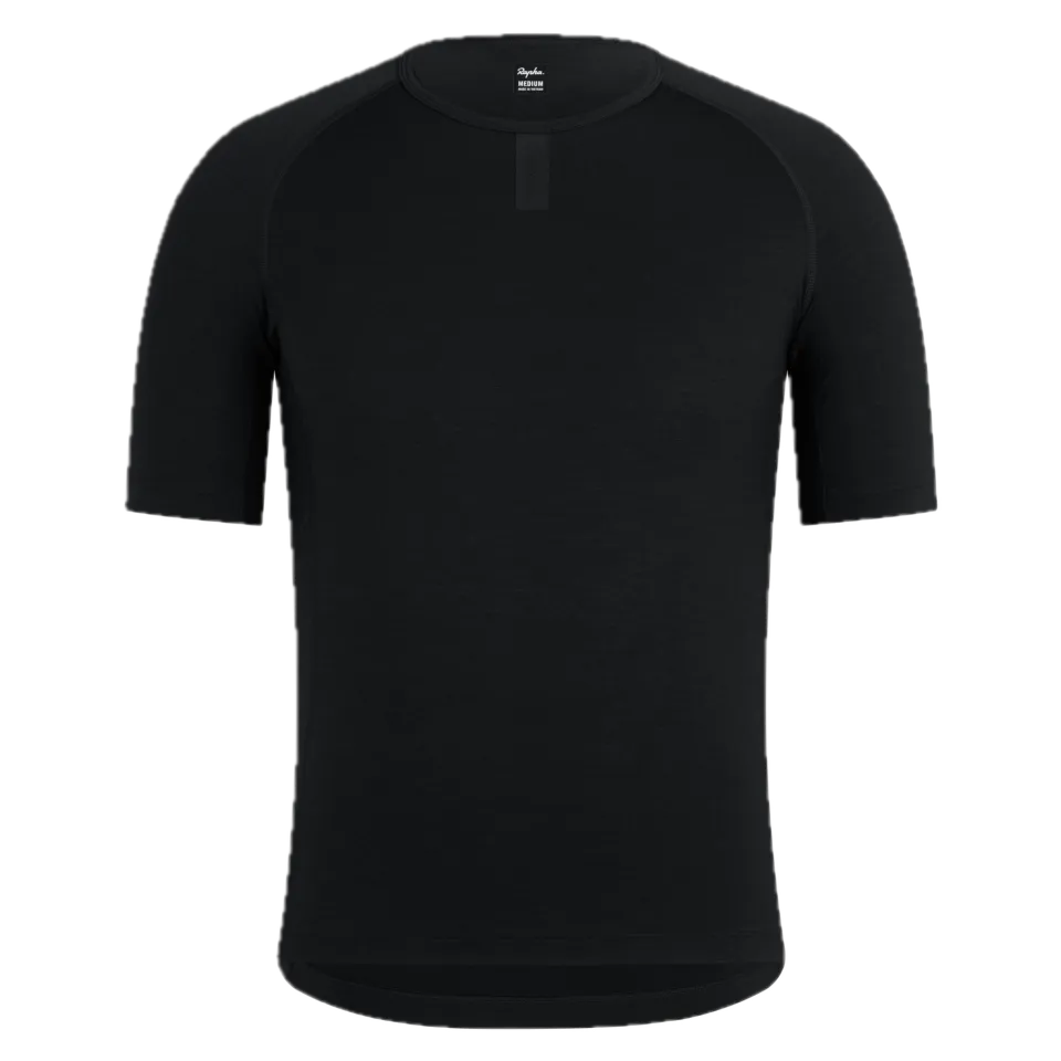 Funkčné prádlo s krátkym rukávom Rapha z vlny Merino je nevyhnutným kúskom oblečenia pre každé ročné obdobie, pretože ponúka prirodzenú priedušnosť, reguláciu vlhkosti a pohodlie na tele pri každej jazde.