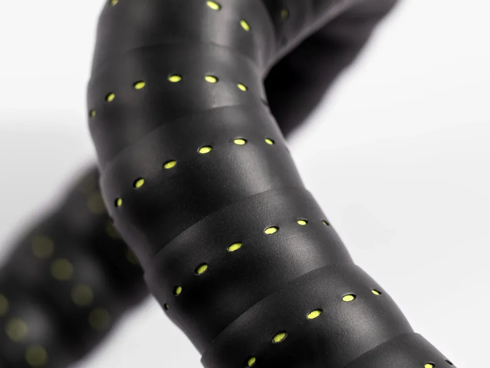 Podrobné údaje o výrobku - Mimoriadne priľnavý povrch zabraňuje kĺzaniu rúk. - Klasický perforovaný design dodáva elegantný vzhľad. - Skvelá pružnosť umožňuje rýchlu a jednoduchú montáž. - Pena tlmiace vibrácie zvyšuje pohodlie. - Súčasťou sady sú koncové pásky a reflexné zátky Bontrager. - Priľnavá zadná strana uľahčuje inštaláciu. - Tenší profil pre elegantný vzhľad.