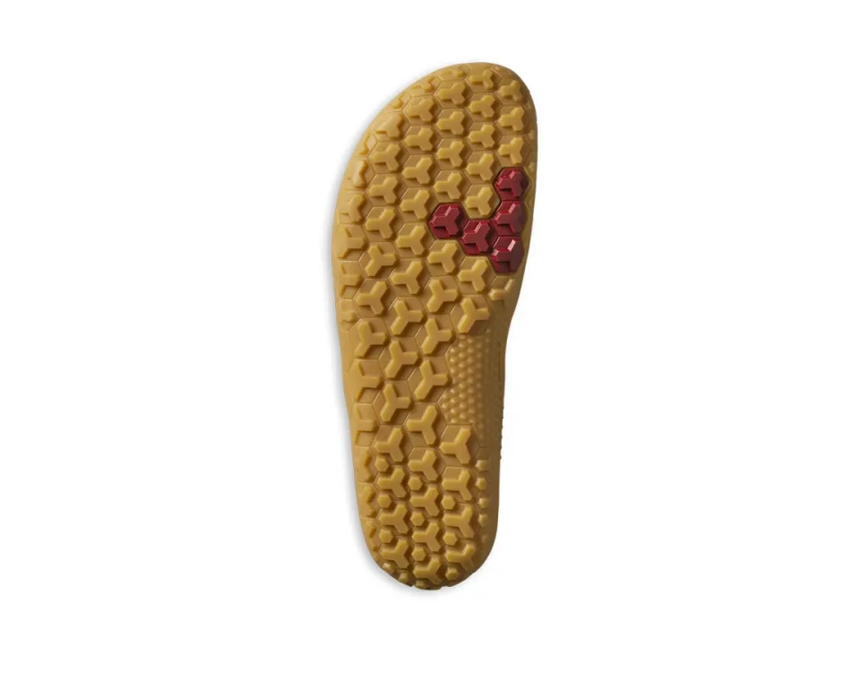 Podrážka: 3mm gumová podošva s 2,5mm multiterénnym vzorom, oderuodolná, s patentovanou ochranou odolnou proti prepichnutiu. Vhodné pre všetky prírodné povrchy, či už pre bahnité, tak aj pre tvrdé kamenisté cesty a hory